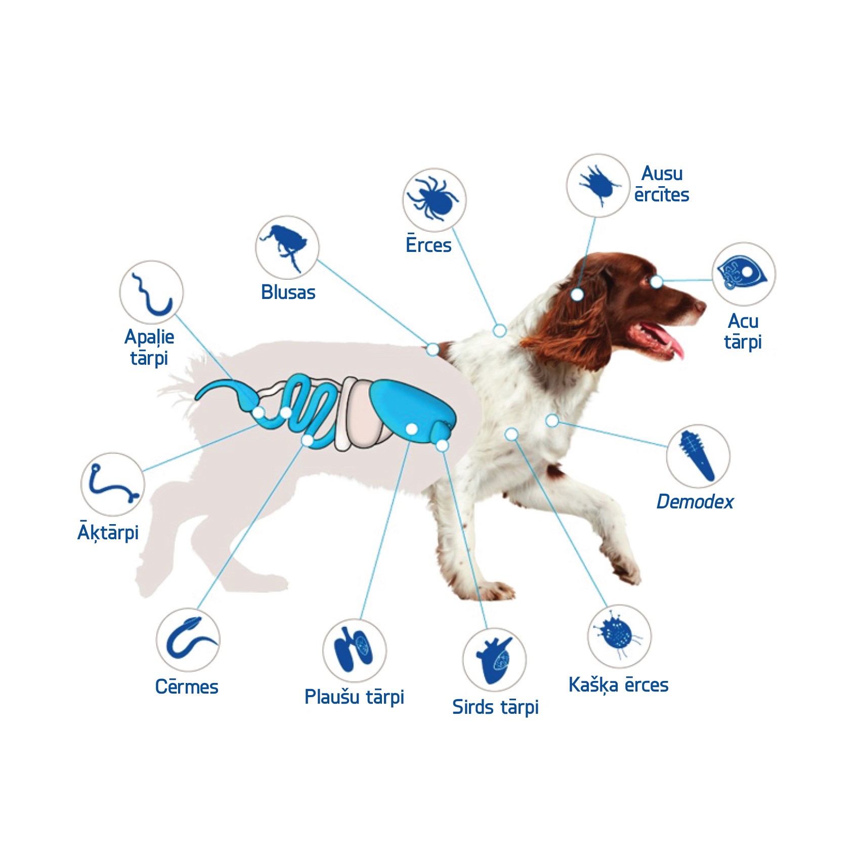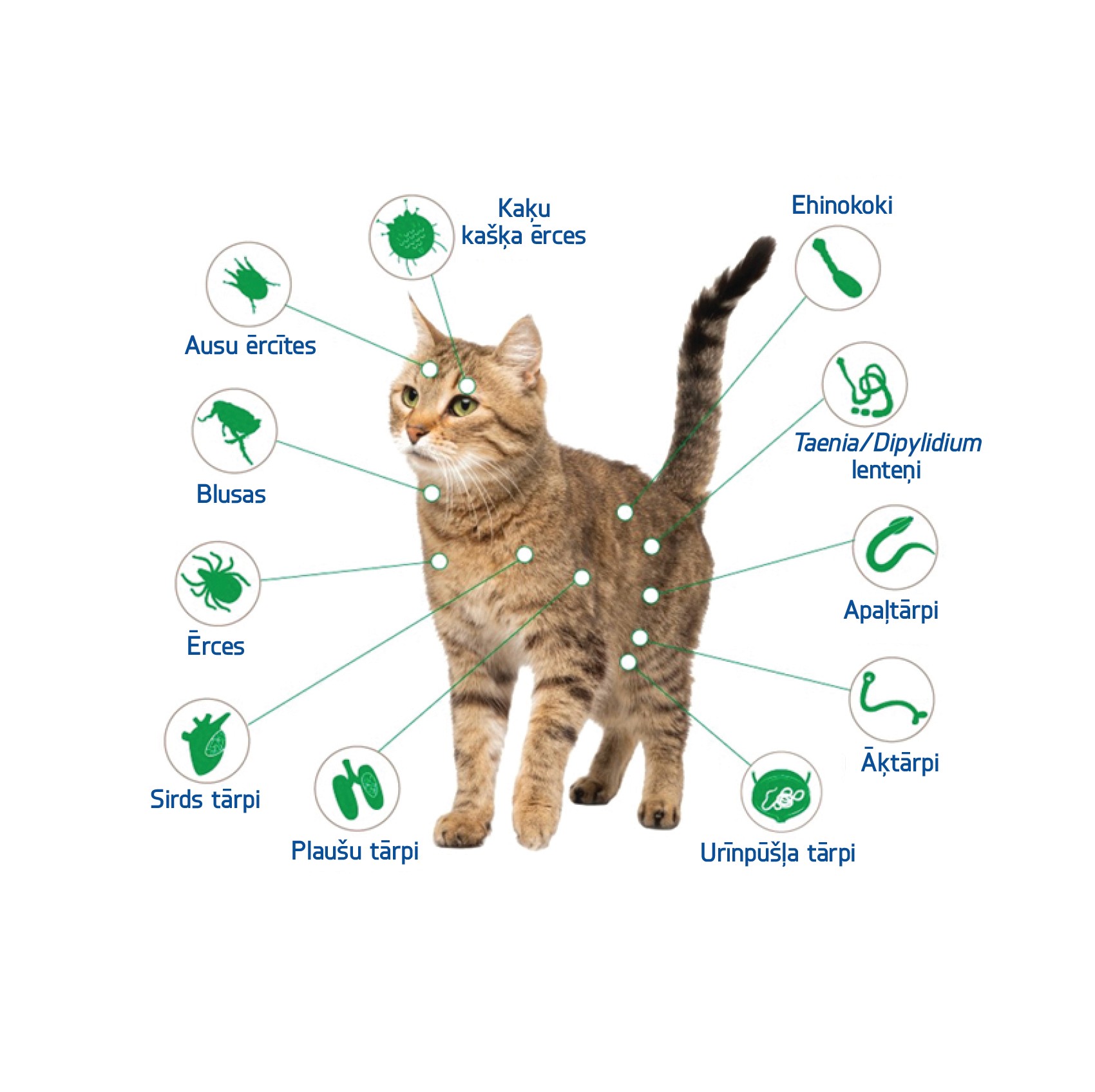 Gan suņiem, gan kaķiem ir pieejami visdažādākie pretparazītu līdzekļi – no tabletēm līdz pilieniem, šķidrumiem smidzināšanai un šķīdumiem. Tomēr tas nenozīmē, ka katram slimības izraisītājam ir nepieciešamas atsevišķas zāles. Izvēlieties vienas viegli uzpilināmas vai iedodamas zāles, kas palīdzēs aizsargāt mājdzīvnieku pret ļoti plašu parazītu klāstu.
